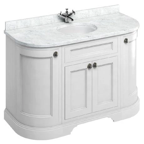 Burlington’s innovative furniture ranges are sure to add style and sophistication to any traditional setting with its elegant designs. This practical freestanding curved vanity unit with its open wide doors offers plenty of storage capacity and features soft closing hinges and stylish chrome plated metal handles. Each unit is coated with 5 layers of ultra-violet stabilised primer to prevent colour fading, it is then painted with a top coat from a range of classic finishes.