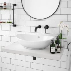 The Chatsworth traditional 560mm wide wall hung satin white vanity unit with gloss white ceramic basin, Victorian inspired design with a modern twist. The Chatsworth range of charming bathroom furniture features classic styling with a satin white finish cabinet and tongue-and-groove side panelling.