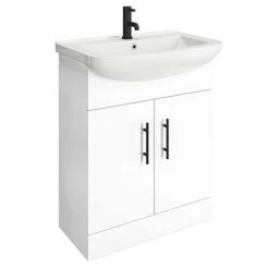 Venice 665mm Gloss White Vanity Unit with Matt Black Handles + Toilet Package