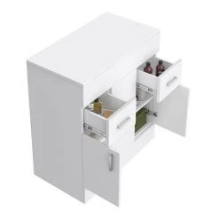 With three generously sized cupboards and two deep drawers, the Toreno Vanity Unit Suite offers plenty of storage space for your toiletries and towels. Comprising a toilet, sink and 994mm wide vanity, this modern bathroom suite is finished in a sleek, glossy white for an ultra contemporary look. The dual flush toilet helps you conserve water, as both six or three litre options are available. Choose from four back to wall pan sizes to suit your design and for a striking finishing touch, why not add a Monza Waterfall Basin Tap?